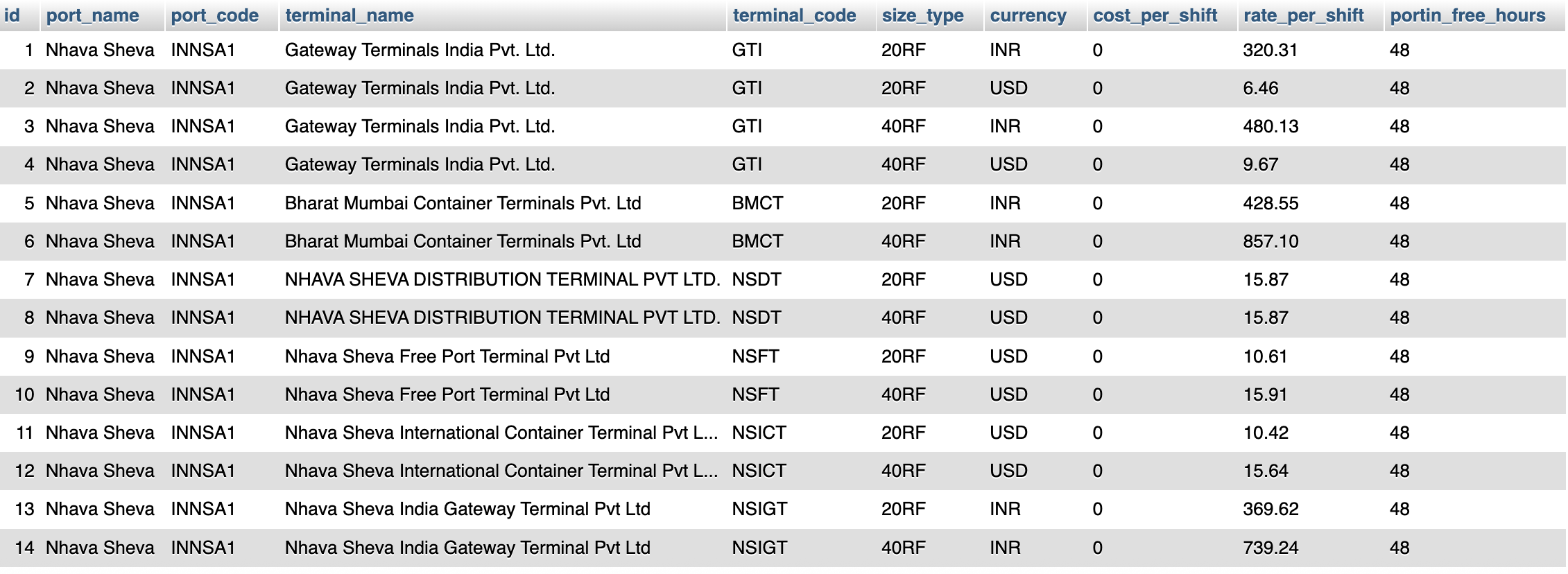 4. Tariff - Terminal wise Reefer PlugIn Charges