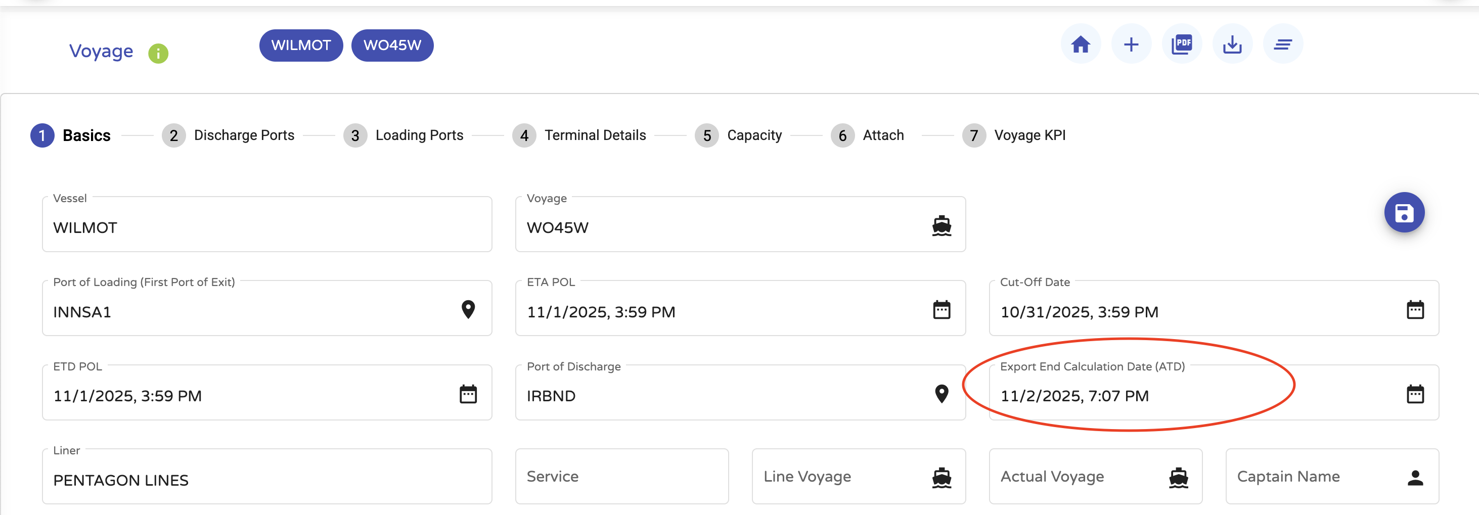 3. Voyage Master - EXPORT END CALCULATION DATE (ATD)